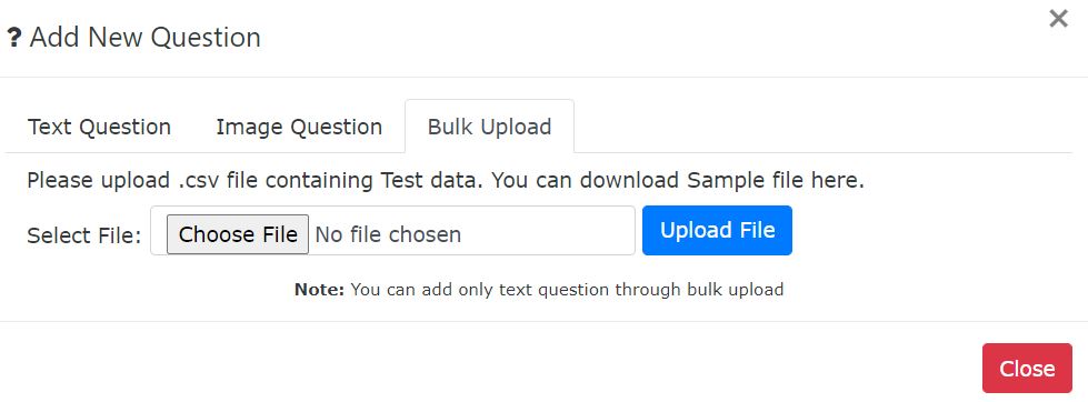 Note: You can add only text questions through bulk upload and please don't change the order of columns in the CSV file or it won't work properly.