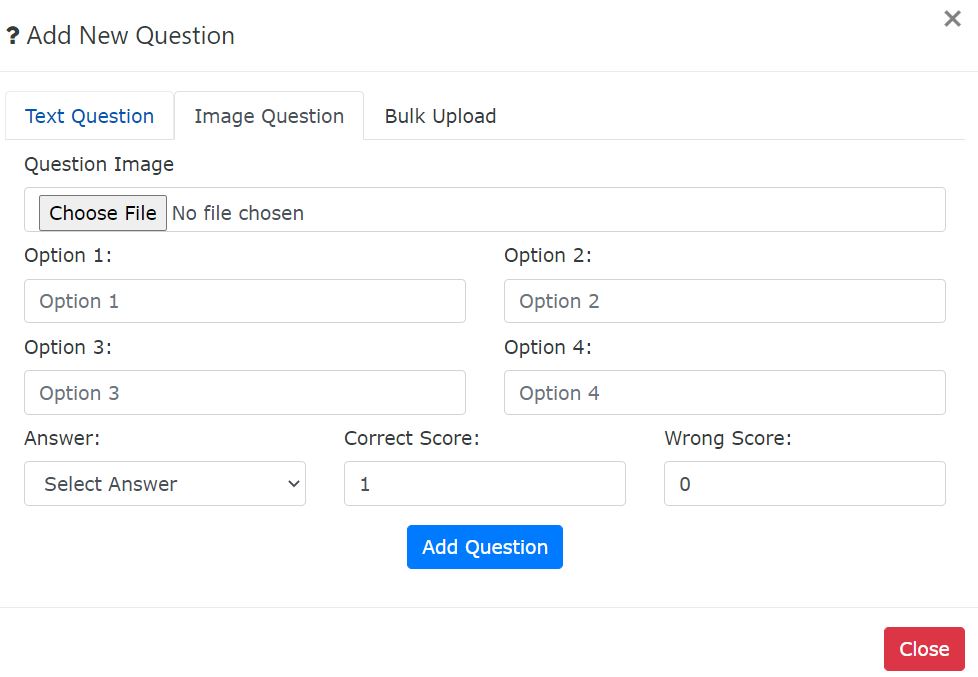 To add a new question image, click on the "Image Question" tab in the dialog box and you will see the following screen.