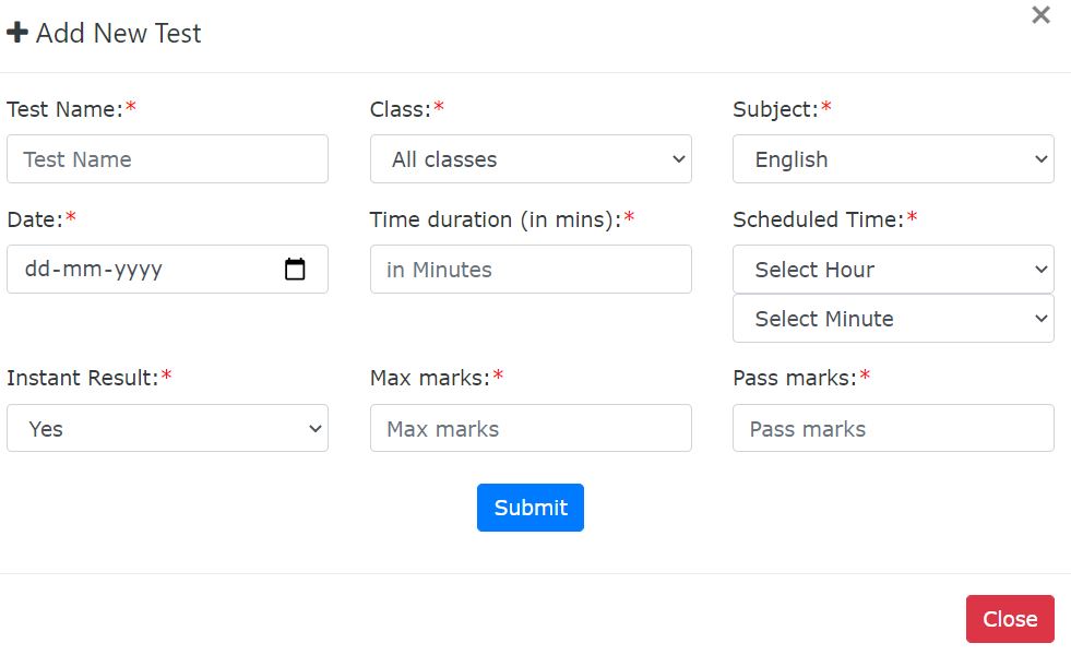 Instant Result: Select Yes if you want to display the result of test right after submission. Else, select No.